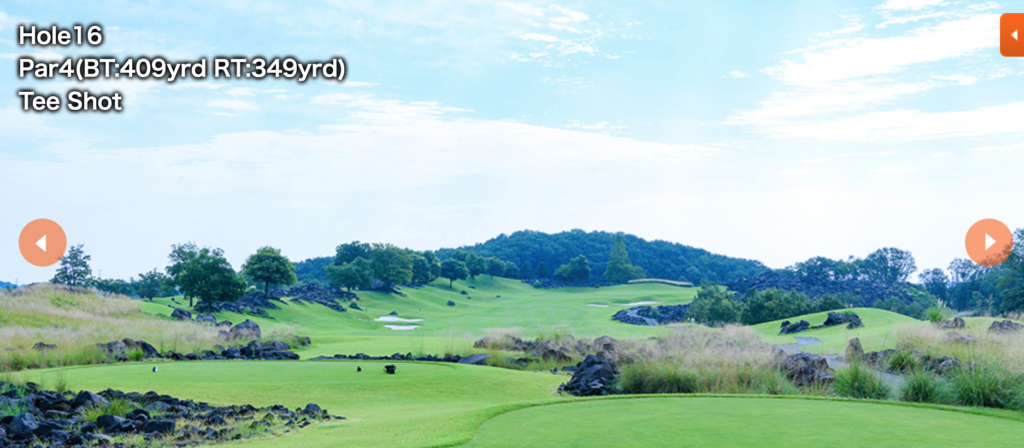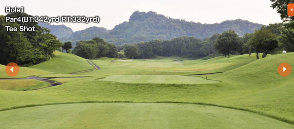 アウトコースは、ロングからのスタート。フェアウェイは広々としているが、第2打目からは少々難しい。インコースは多少のアップダウンがあり、豪快な打ちおろしのロングが楽しめます。最終の18番ホールは、池に囲まれたアイランドグリーンのショートホール。美しいベントの1グリーンをお楽しみください。